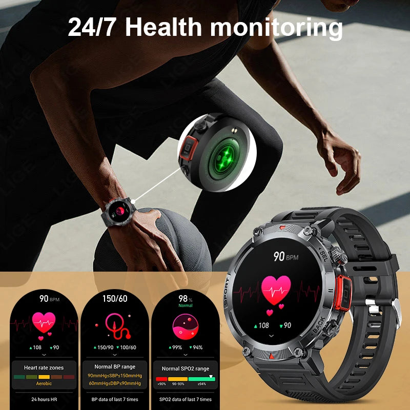 LIGE Military Grade New Outdoor Sports Men Smart Watch AMOLED Full Touch Screen With LED Flashlight Bluetooth Calling SmartWatch