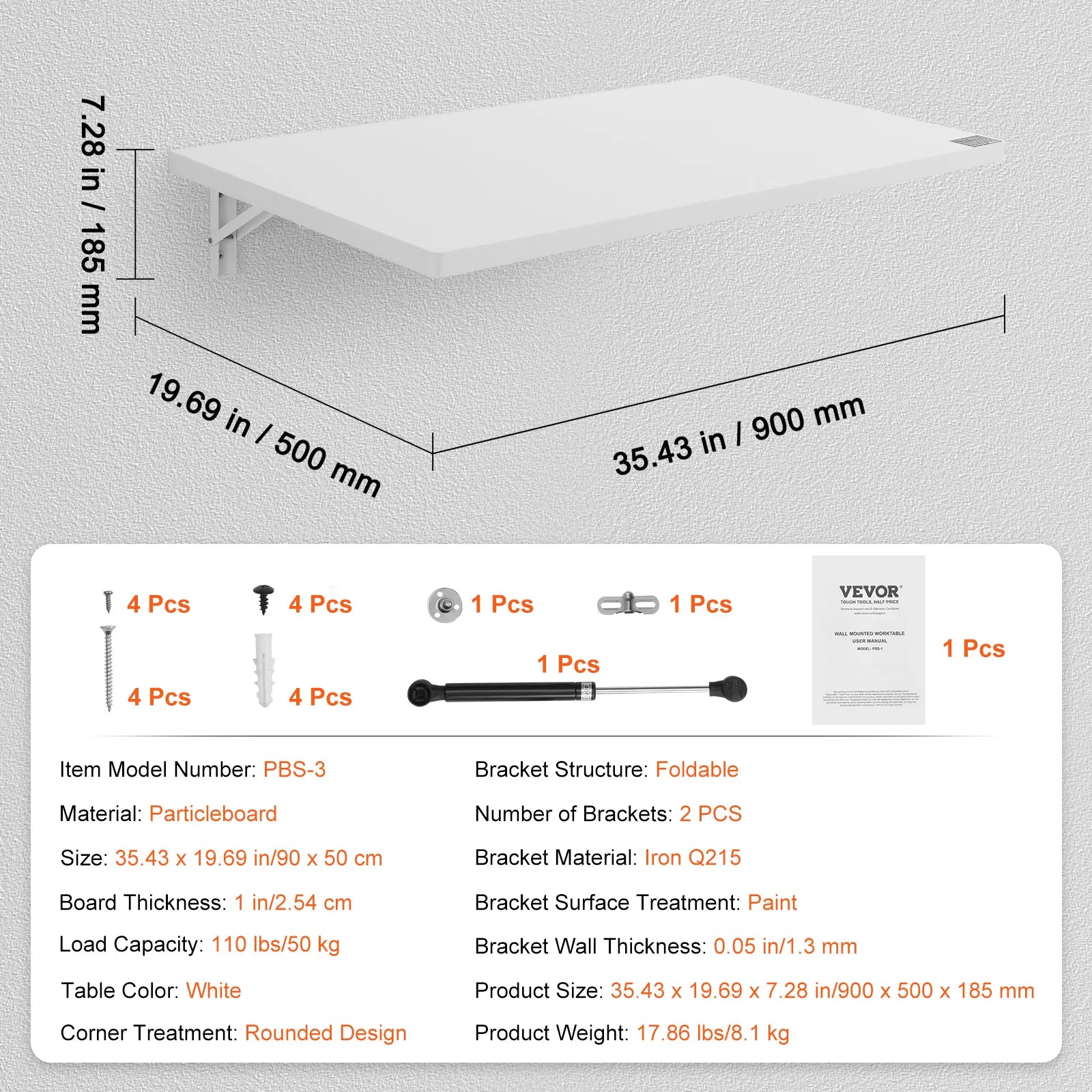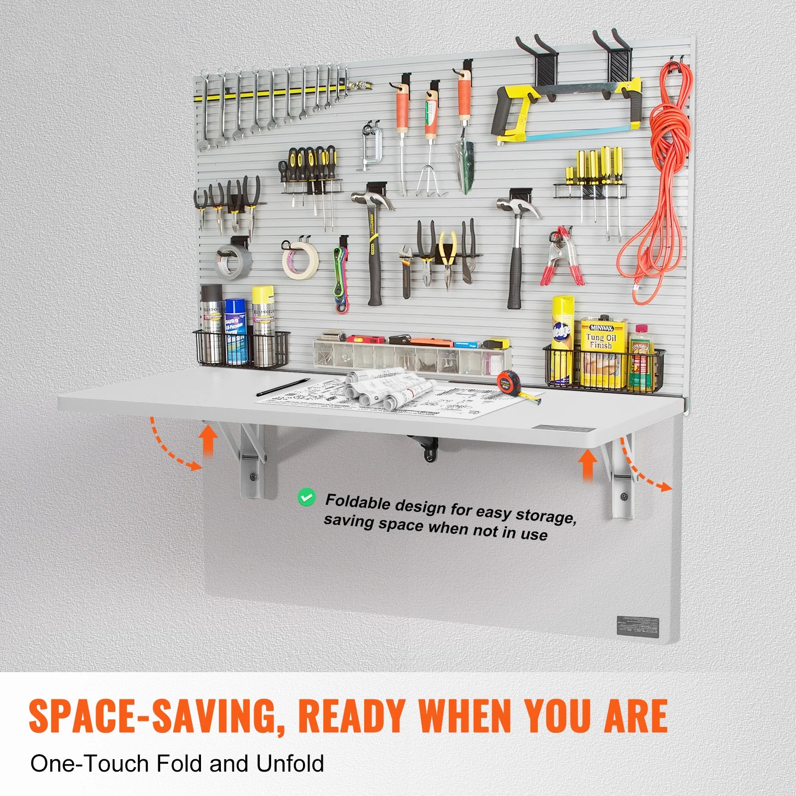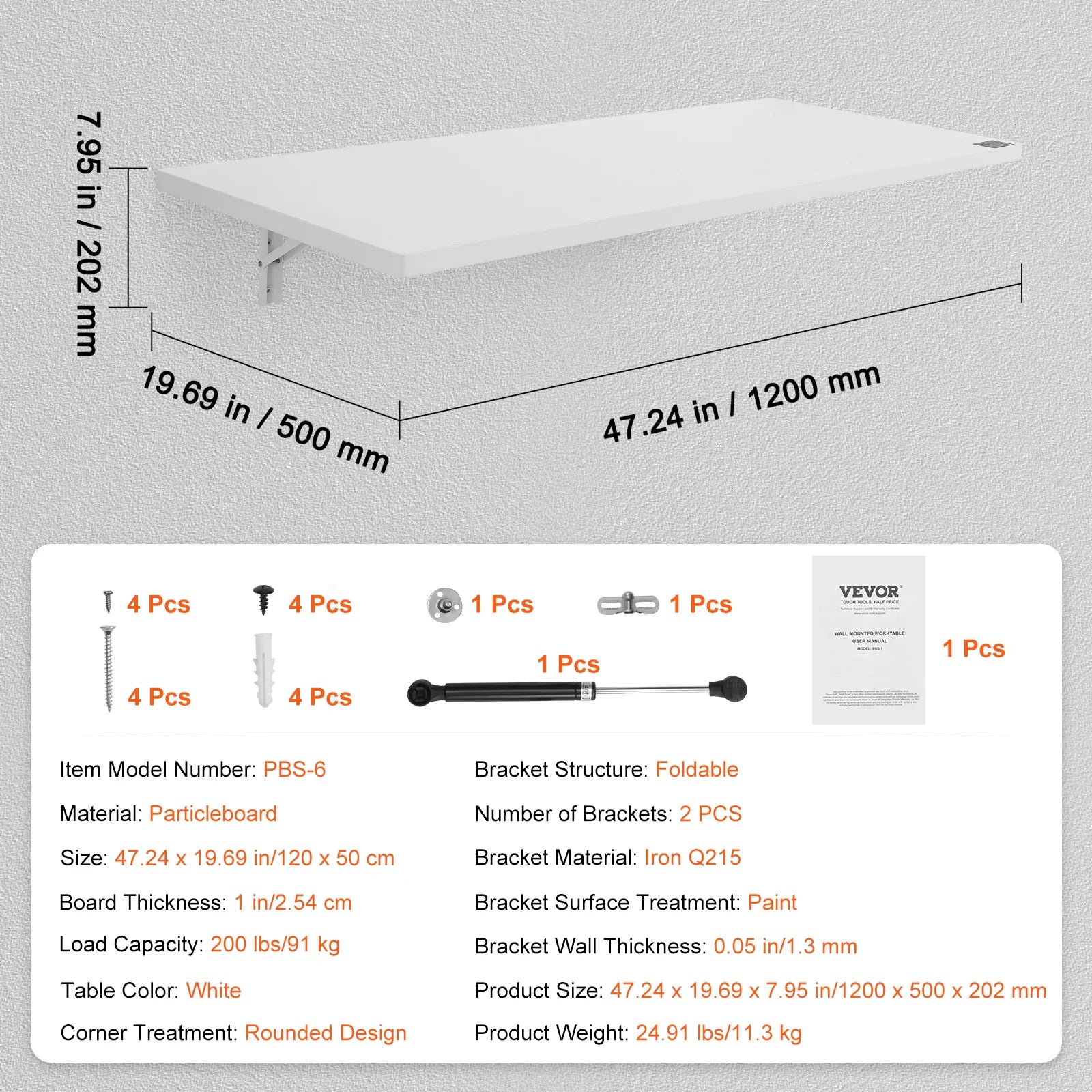 SucceBuy Wall Mounted Folding Table Drop Leaf Floating Desk with Bracket Fold Down for Home Office Room Kitchen Space-Saving